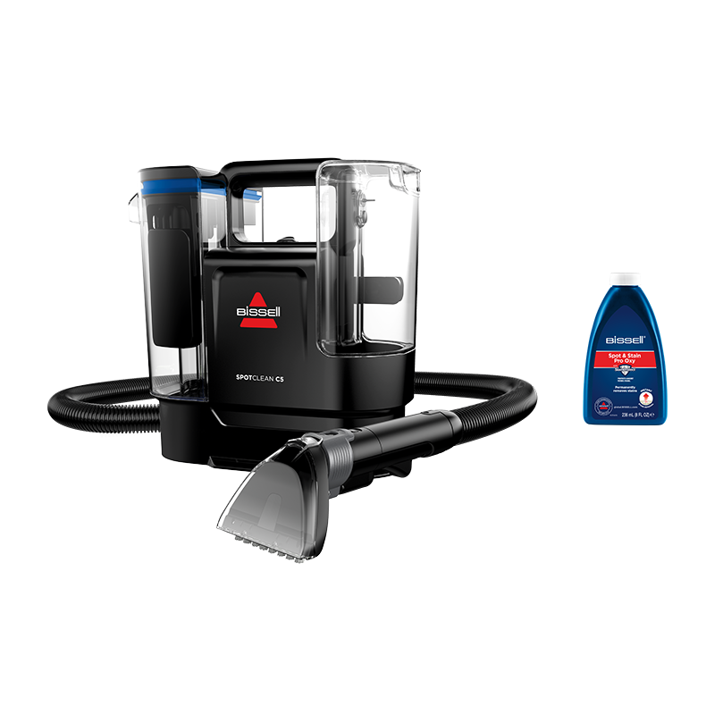 Výkonný 400 W tepovač koberců a čalounění BISSELL® SpotClean® C5 Select je nepostradatelný společník pro snadné odstraňování skvrn a fleků ve vašem domově. Fleky stačí nastříkat připraveným roztokem, vykartáčovat a nepořádek odsát. Odstraňte špínu z čalounění, koberců, koberečků, zvířecích pelíšků a interiérů automobilů. Díky extra dlouhé vestavěné hadici s 10 cm kartáčovým nástavcem Tough Stain Tool se dostanete všude tam, kde je třeba. Lehká konstrukce pro snadnou manipulaci a kompaktní velikost pro bezproblémové uskladnění. Díky systému dvou oddělených nádrží se drží čistá a špinavá voda odděleně, takže vždy čistíte čistým roztokem. V balení s čisticím prostředkem BISSELL Spot & Stain Pro Oxy.